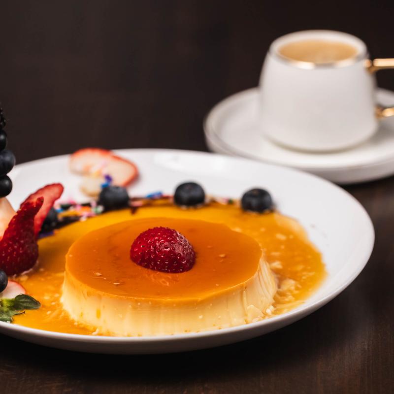 Gorgonzola cheese, smoked Gouda, and Manchego cheese, served with fig jam, seasonal fresh fruits, and nuts.