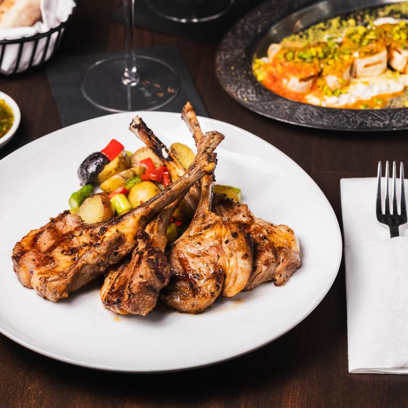 Slow-braised, tender lamb shank, creamy Anatolian keskek wheat, finished with its rich pan jus, grilled veggies.