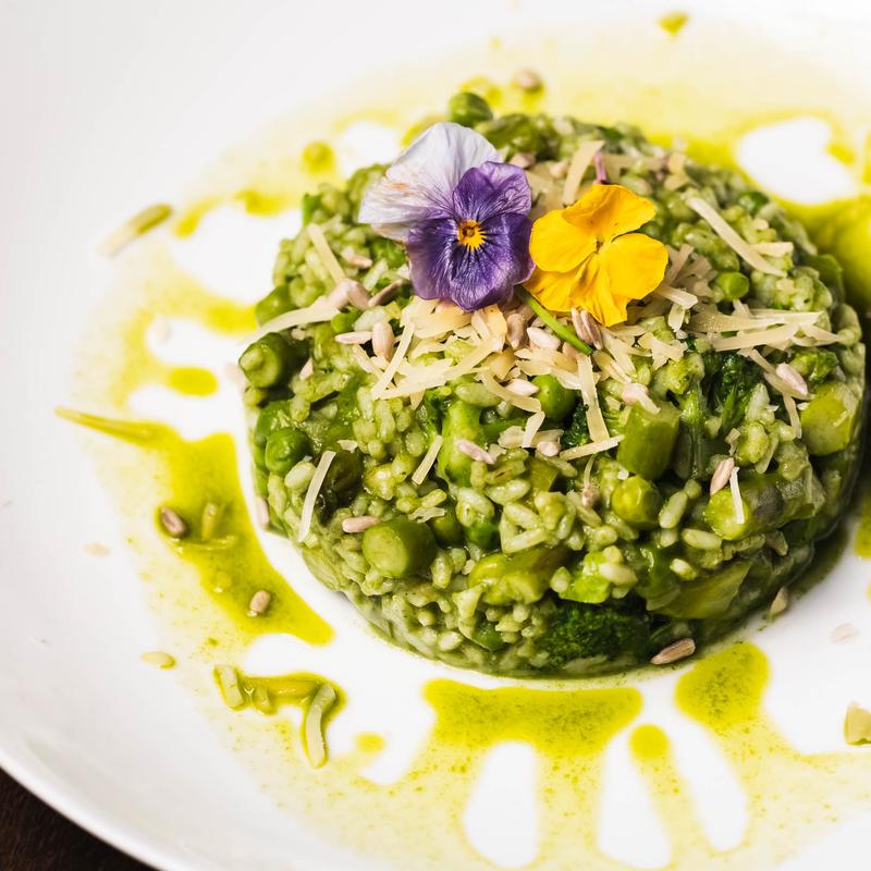 Asparagus, green beans, broccoli, spinach & parsley puree, toasted sunflower seeds.